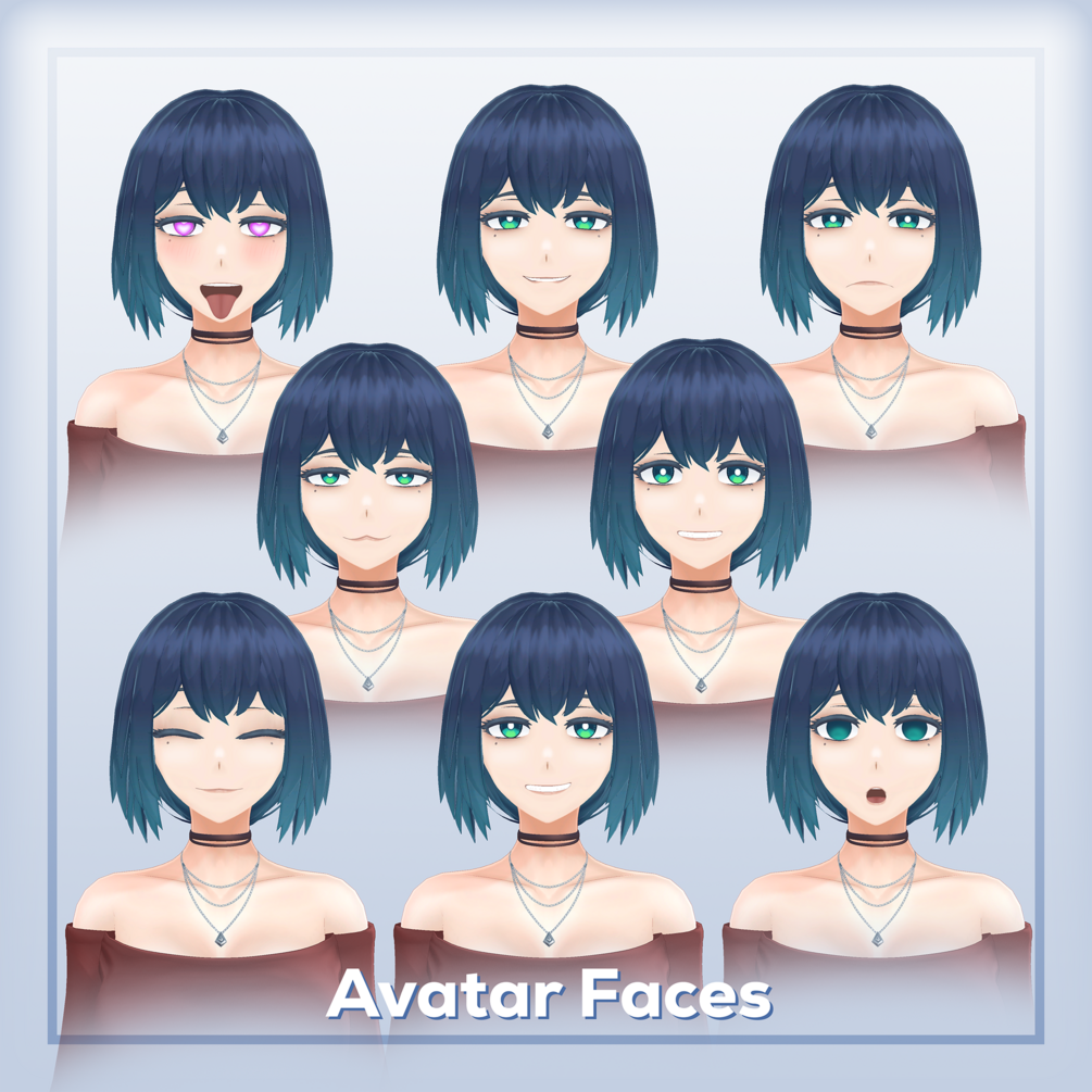 A unity package with the avatar setup for upload to vrchat, all of the source files, and photoshop documents for textures.