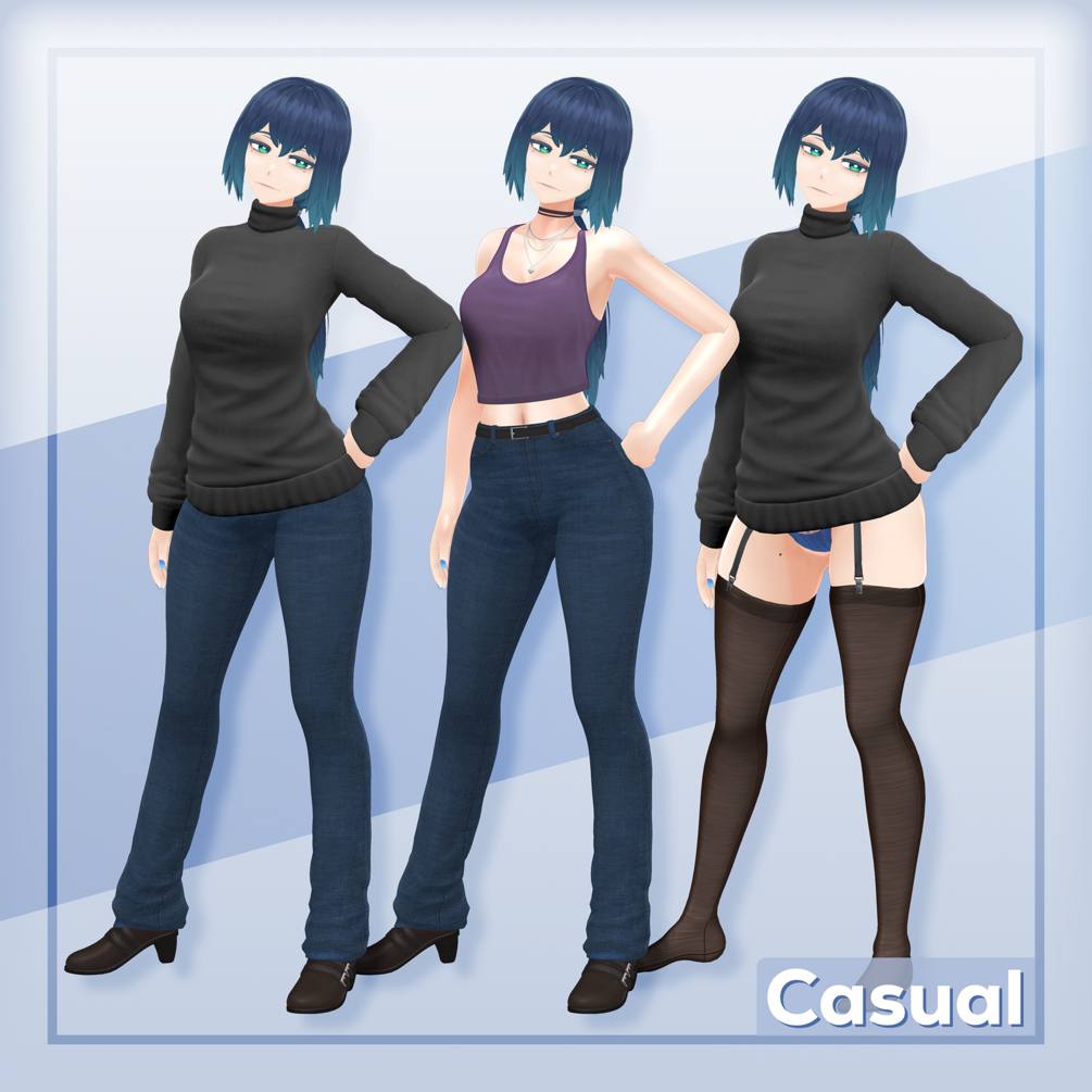 - Updated some shapekeys to help with shirt clipping on main outfit